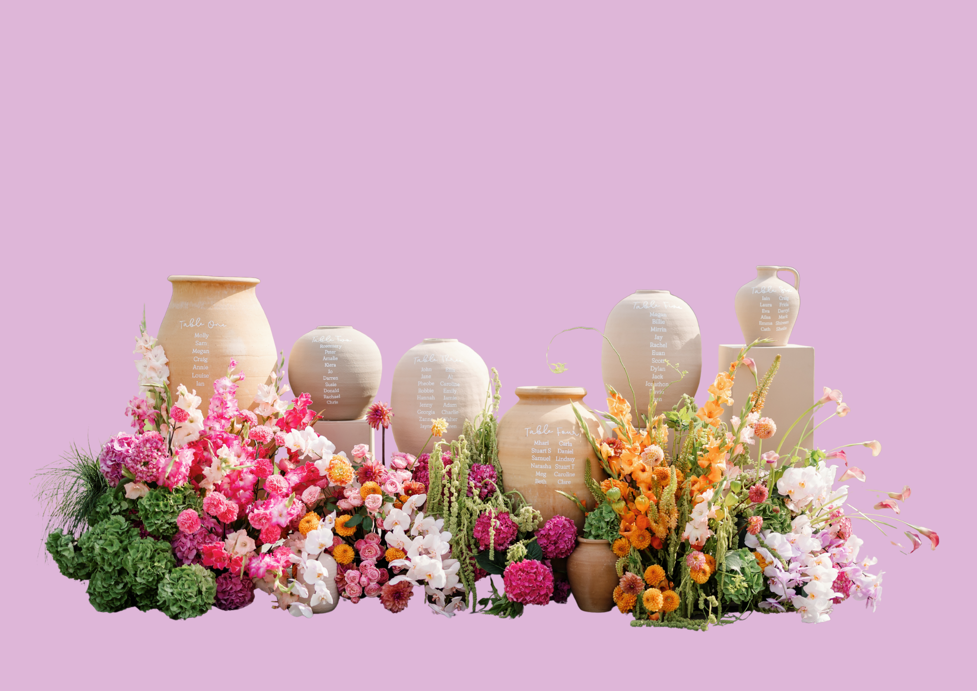 This budget allows us to create truly abundant, statement-making floral designs. Expect large ceremony installations, lush table arrangements, bridal bouquets, and buttonholes, all designed to transform your venue. With a higher spend, we dedicate more time to curating every detail of your day, including planning site visits and ensuring your florals are perfectly tailored to your vision.